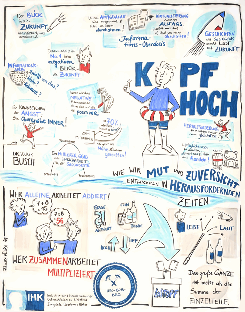 Der fast 1,5-stündige Vortrag von Dr. Volker Busch hat nicht nur MUT gemacht, sondern auch im Anschluss viel Gesprächsstoff für die angeregten Gespräche geboten. Das Recording ist unter erschwerten Wetterbedingungen entstanden. Am Ende waren als Beteiligten begeistert und haben noch mal die wesentlichen Kernaussagen nachlesen und als Inspiration mit nach Hause nehmen können.